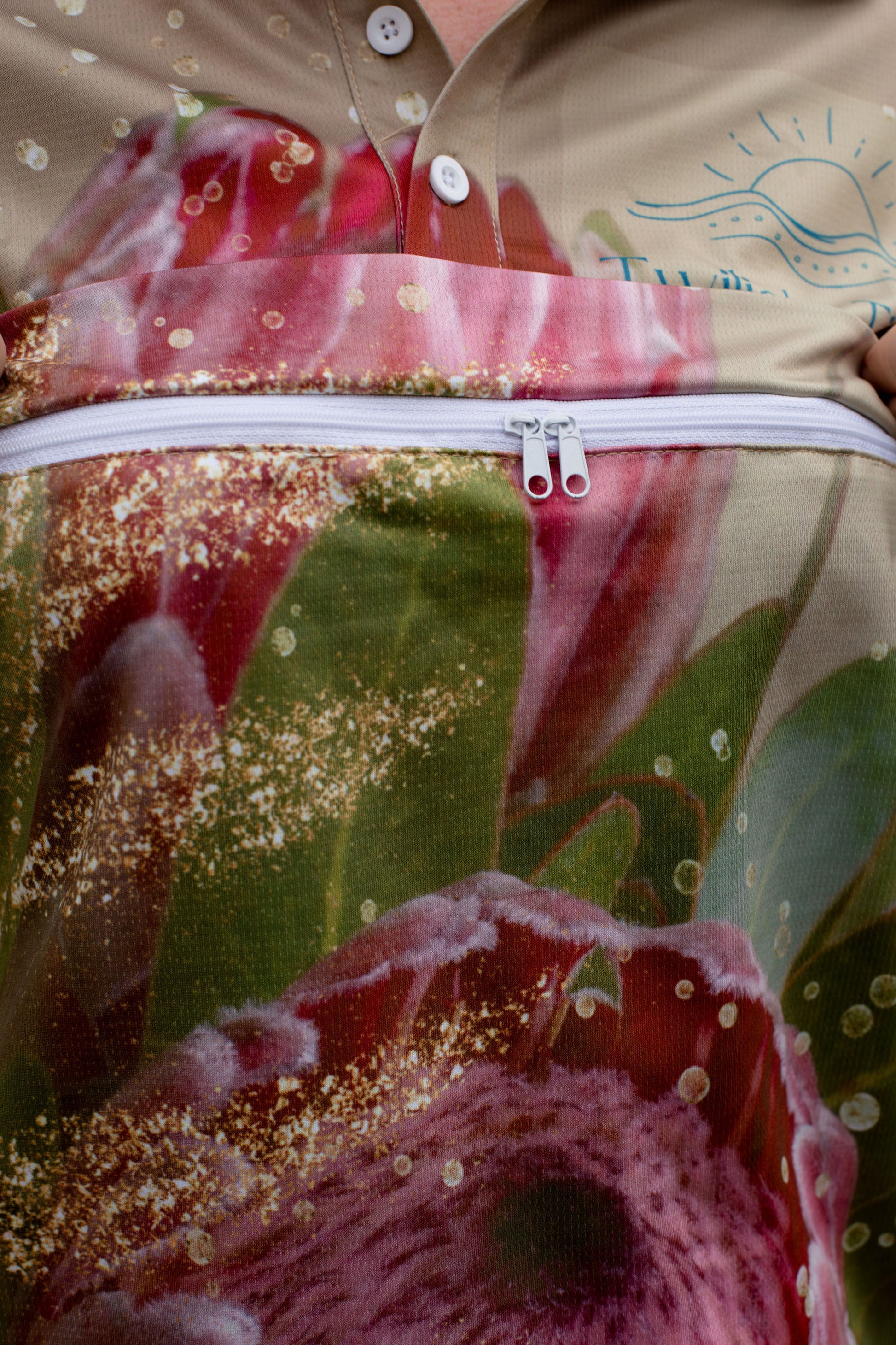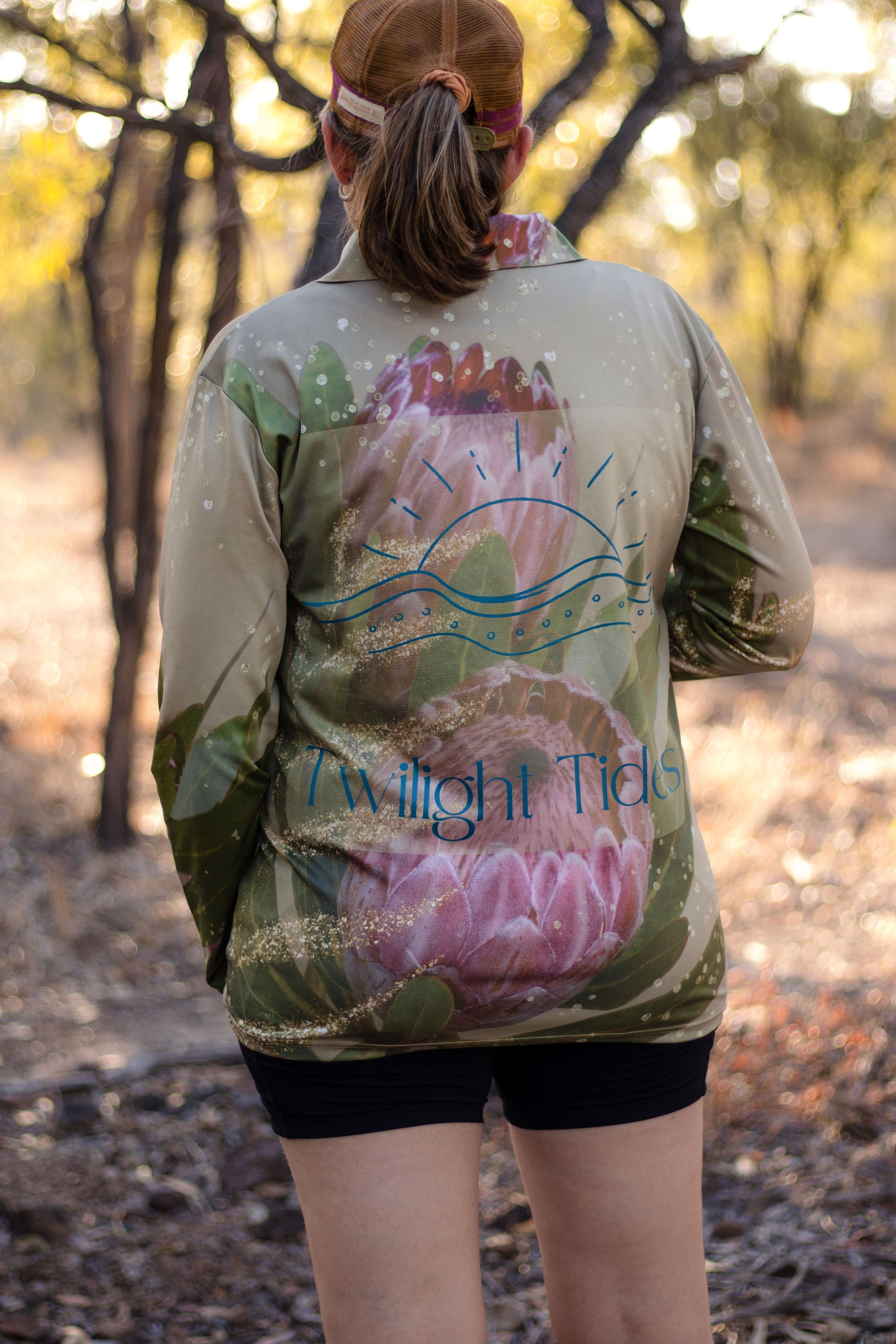 A floral design was what I had in mind, I wasn’t sure which flower though. Upon my searching the protea flower kept appearing, I still wasn’t sure, so I put it to a vote and it was the clear winner! Since then it’s been appearing in my feed and I seen it in the most beautiful wedding bouquet. The universe knew this is what I needed for my shirt.